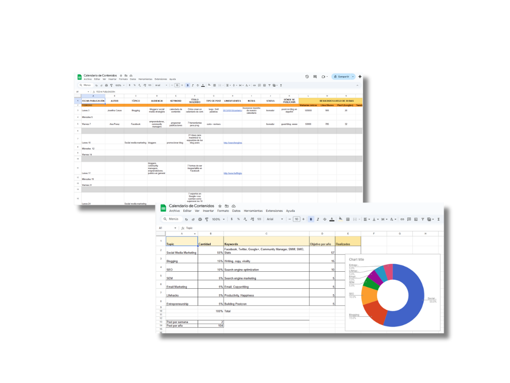 - Estrategia de contenidos + Calendario semanal.
